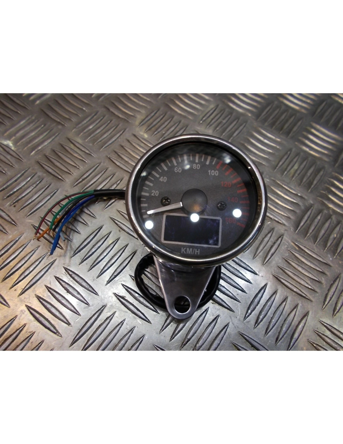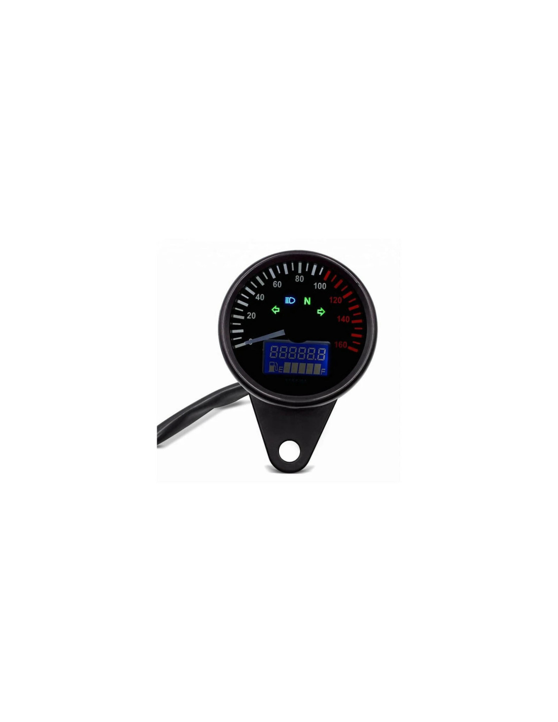 Tension: 12 v DC Vitesse: 0 ~ 160 km/h Unité: km/h Diamètre: 66 mm Hauteur: 57 mm Montage Support Longueur: 72 mm Distance Entre Deux Montage Vis: 45 mmbranchement fils:Noir fil brancher sur le secteur pôle positif Fil vert (Rétro-Éclairage) brancher sur le secteur pôle négatif Vert et Rouge fil (Point Mort) brancher sur le secteur pôle négatif Bleu fil (Haute Faisceau) Brancher sur le secteur pôle positif Orange et Bleu Clair (Gauche et À Droite) brancher sur le secteur pôle positif