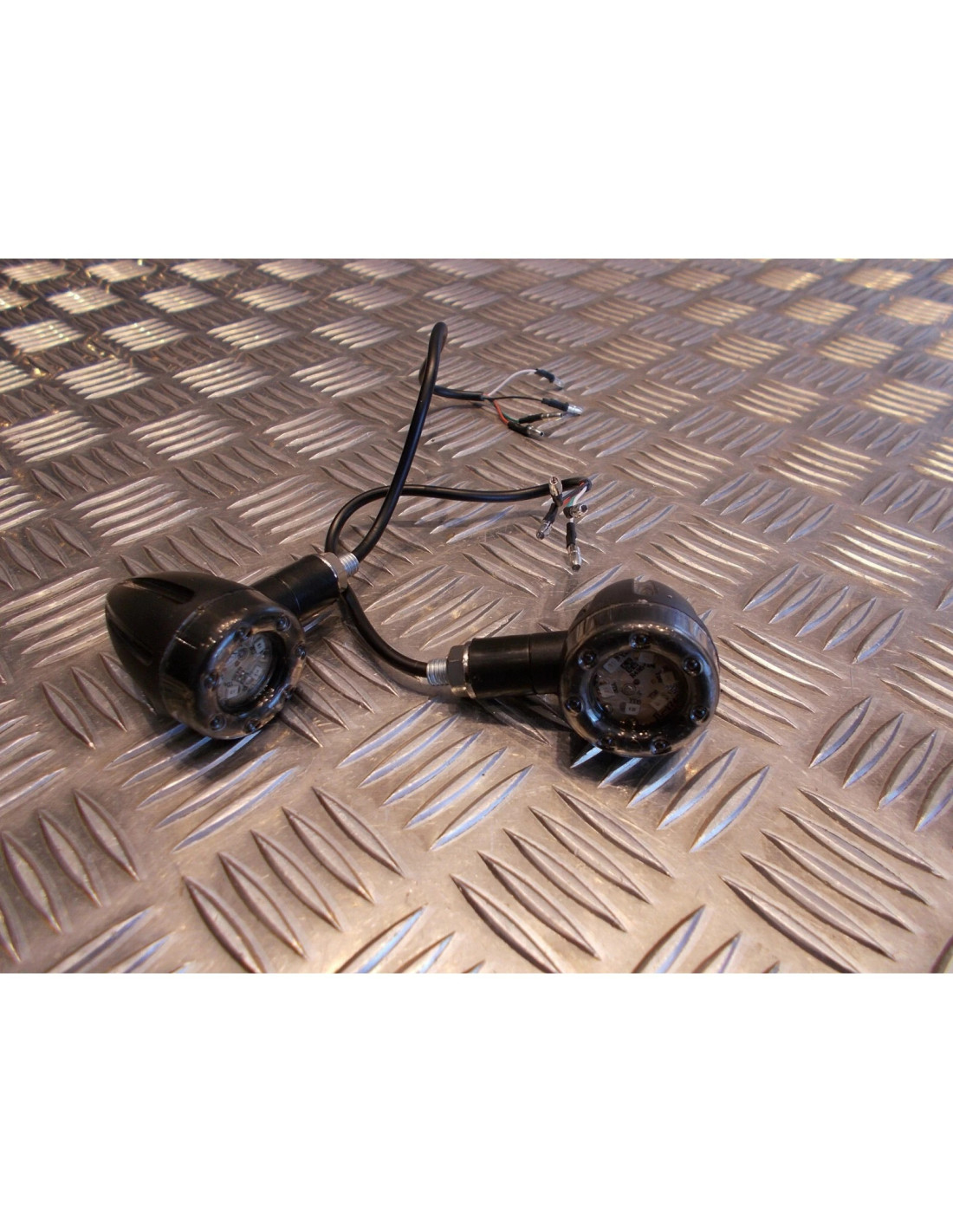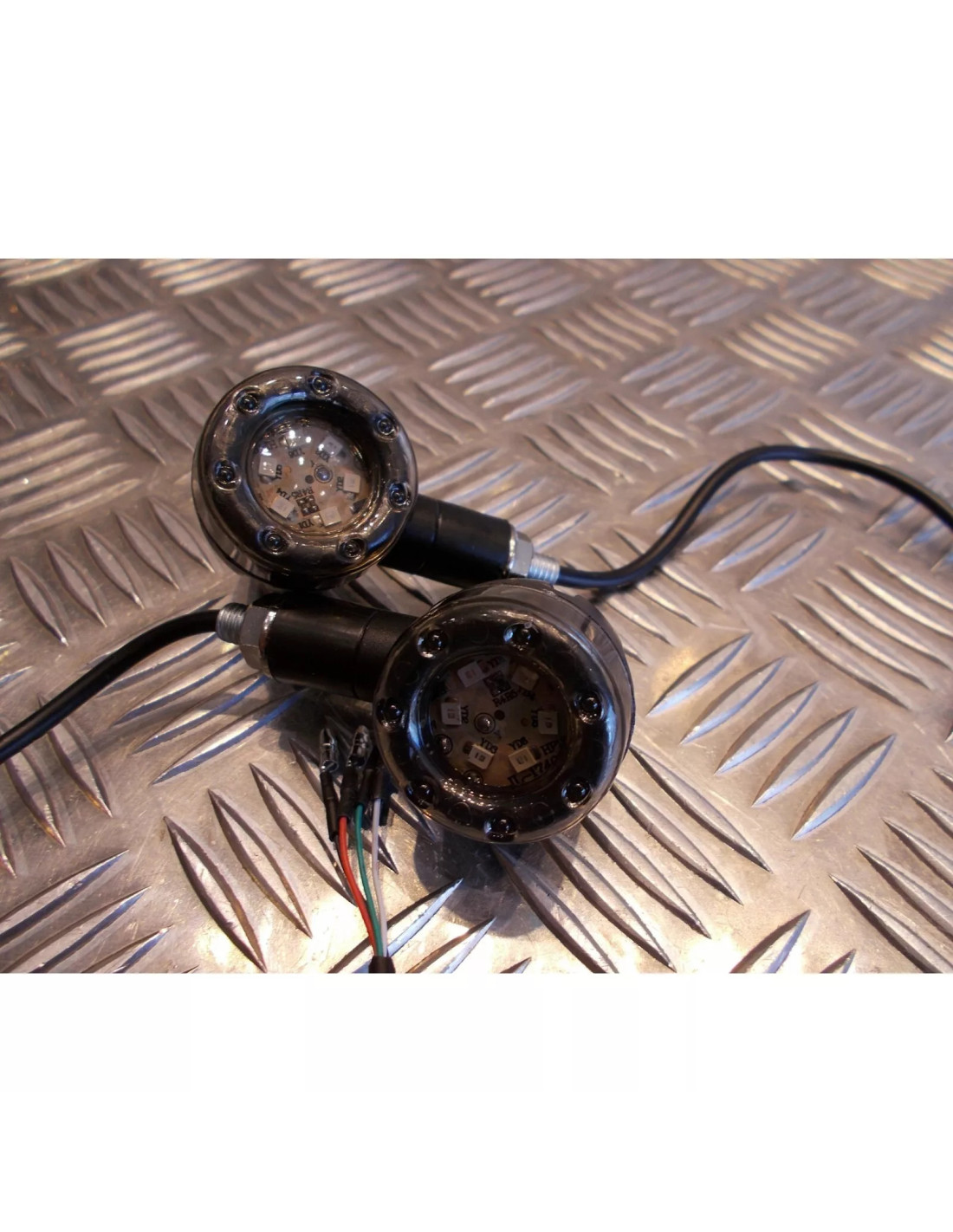 spécifications: Type: Moto lumière matériel: ABS + Métal produit Couleur: Noir Couleur de la lumière: Rouge et Jaune tension: 12 V LED Quantité: 13 Pcs (6 Jaune Led + 7 Rouge Led) fil Diamètre 7mm/0.3 " Longueur du câble: Env. 23 cm taille: 3.5*6*8 cm noir pour le négatif, rouge fil pour rouge cercle LED haute faisceau, Vert fil pour rouge cercle LED faible faisceau, Blanc fil pour ambre LED faisceau.