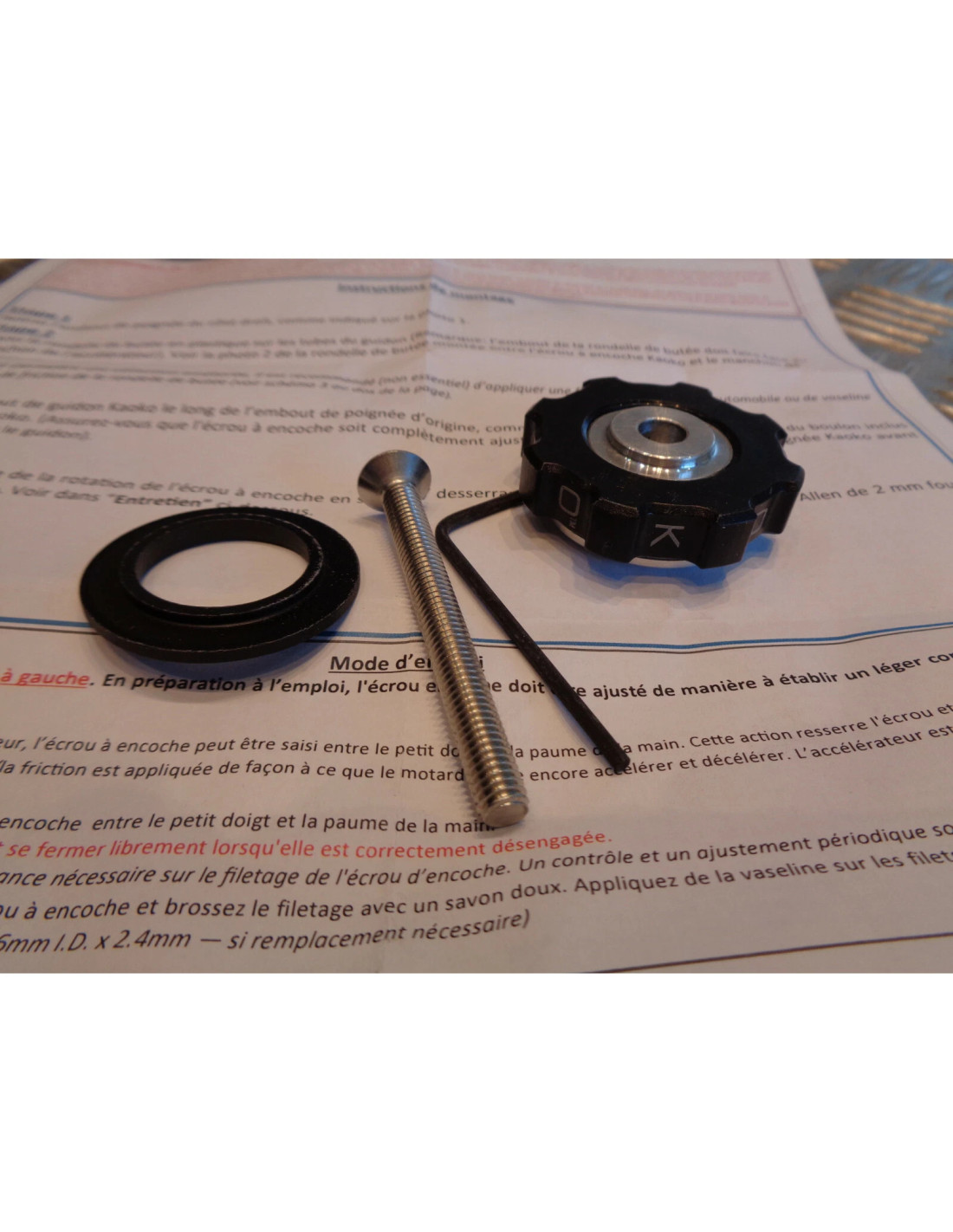 Le Cruise Control de Kaoko consiste en un système ingénieux et robuste : Une molette de friction intégrée à un embout de guidon spécifique.