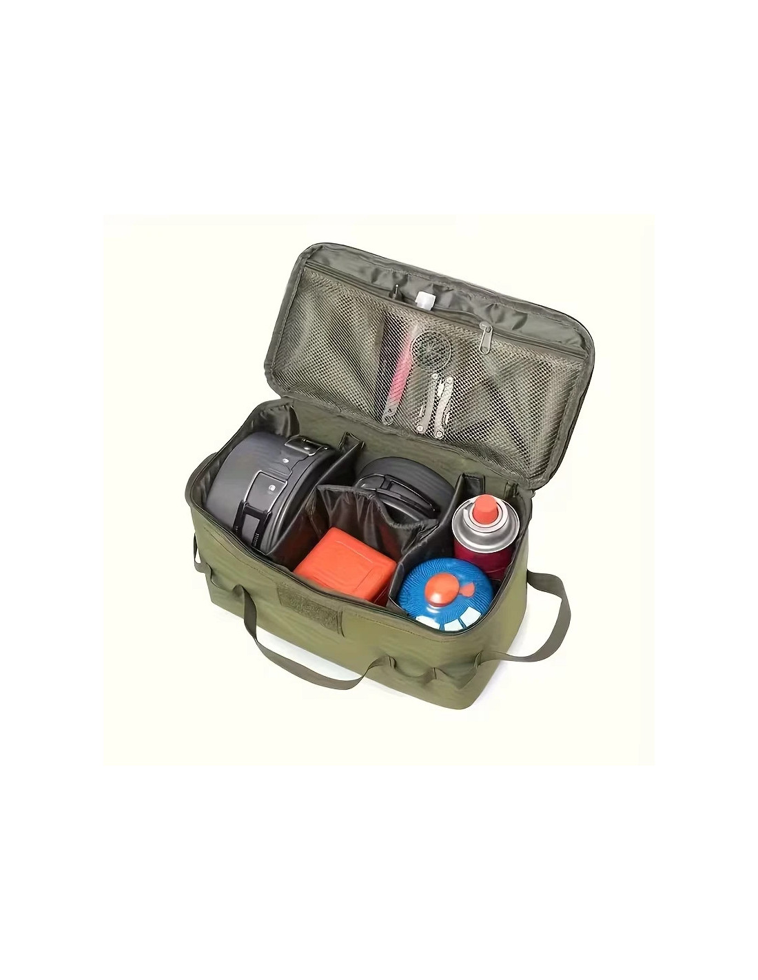 sac de rangement pliable avec bretelles d'épaule - Tissu Oxford 600D, fermeture à glissière, organisateur multi compartiments pour le camping, equipement de plein air, sac de rangement de camping chasse peche rechaud ...