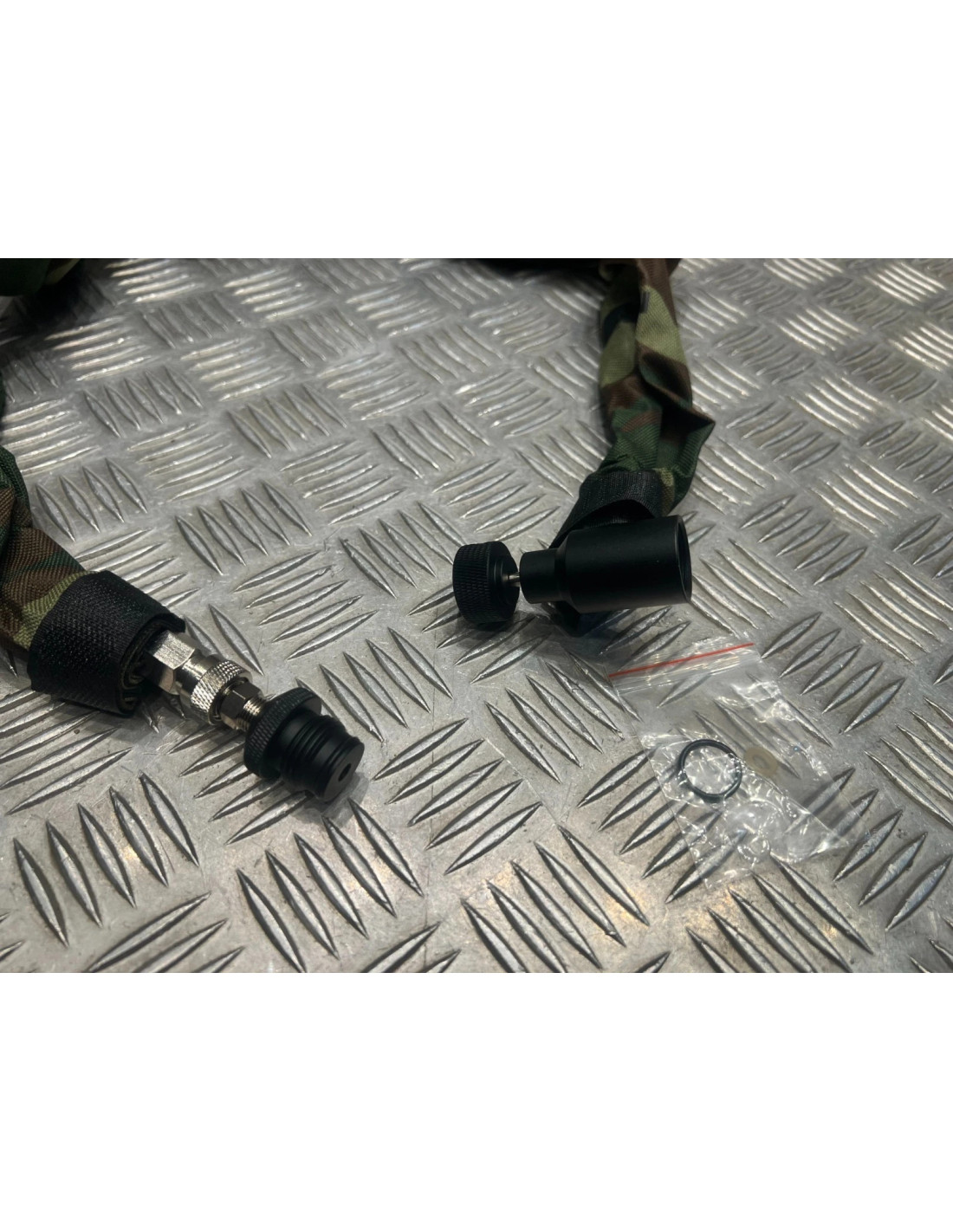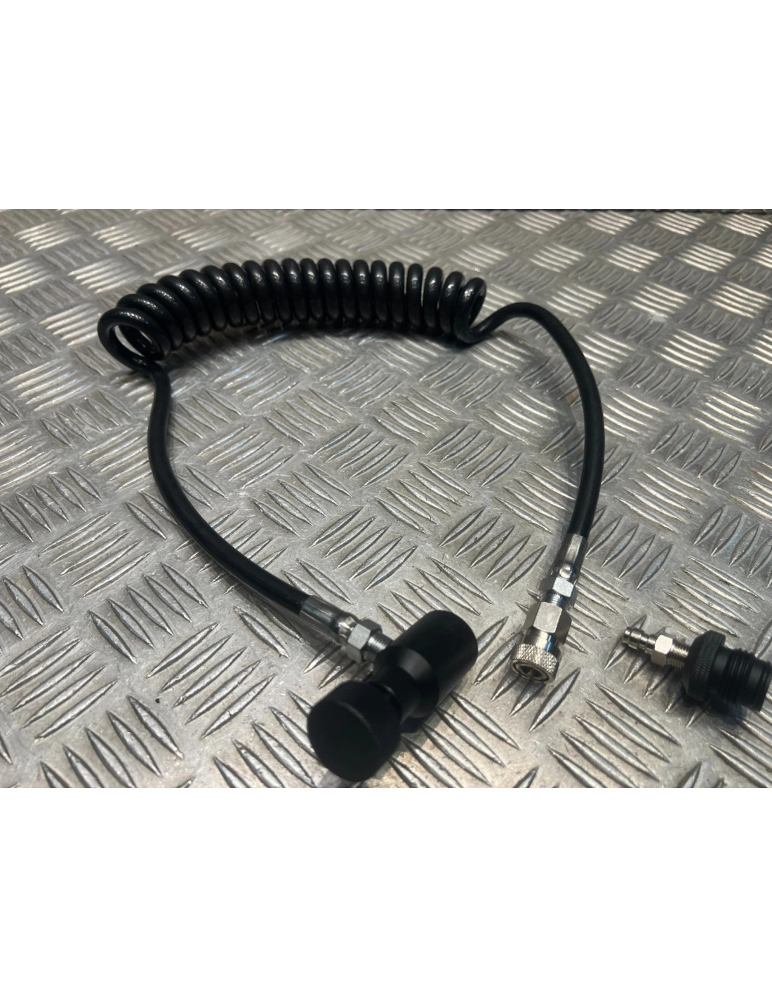flexible mamba avec purge slide check et housse protection milops 65cm a 140 cm pour connecter vos bouteilles de CO2 de paintball.