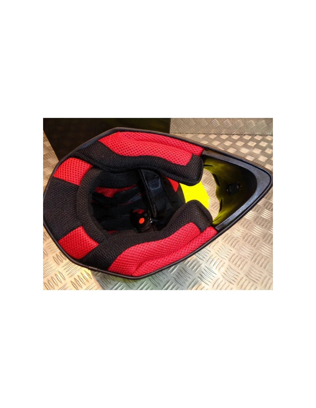 Casque MX / enduro Fabriqué en résine thermoplastique de haute qualité (ABS) Intérieurs totalement amovibles et lavables Protège nez intégré Système de retrait rapide des coussinets de joues Système de ventilation multiple Fermeture par boucle double D Poids : 1300 gr Homologation E1-05300443