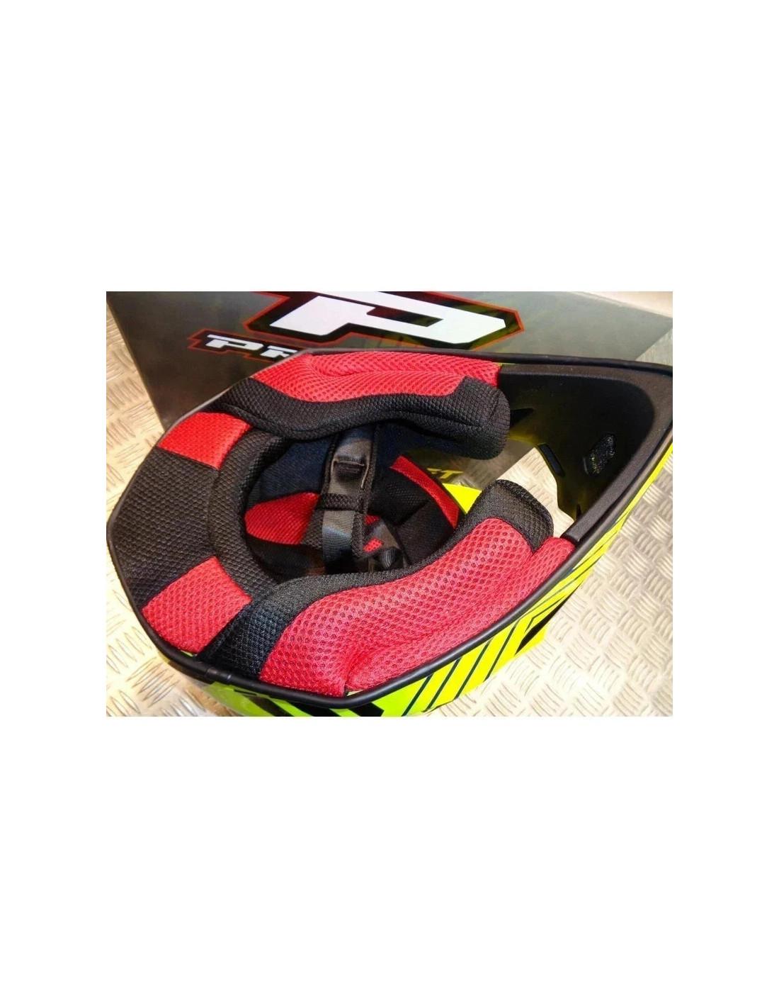 Casque MX / enduro Fabriqué en résine thermoplastique de haute qualité (ABS) Intérieurs totalement amovibles et lavables Protège nez intégré Système de retrait rapide des coussinets de joues Système de ventilation multiple Fermeture par boucle double D Poids : 1420 gr Homologation E1-05300443