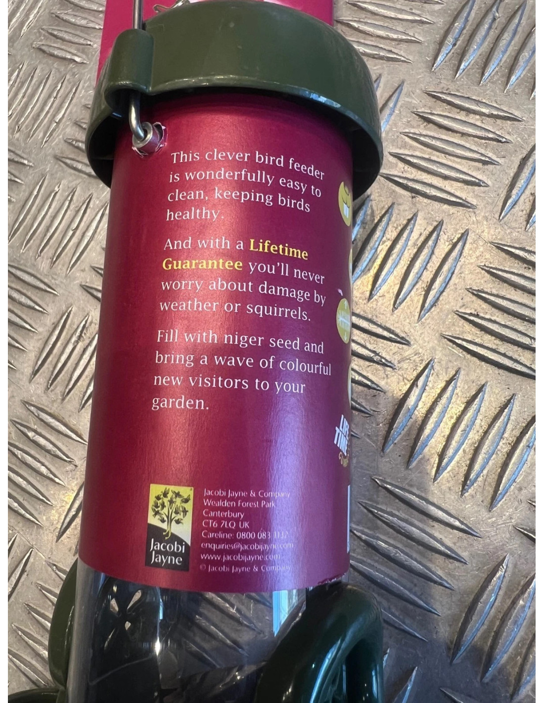 Cette mangeoire de qualité supérieure est spécialement conçue pour offrir de minuscules graines de niger qui sont irrésistibles pour les chardonnerets dans de nombreux jardins. Extrêmement facile à nettoyer, elle est conçu pour durer avec de gros composants métalliques qui résistent aux attaques des écureuils et aux rudes conditions hivernales.
