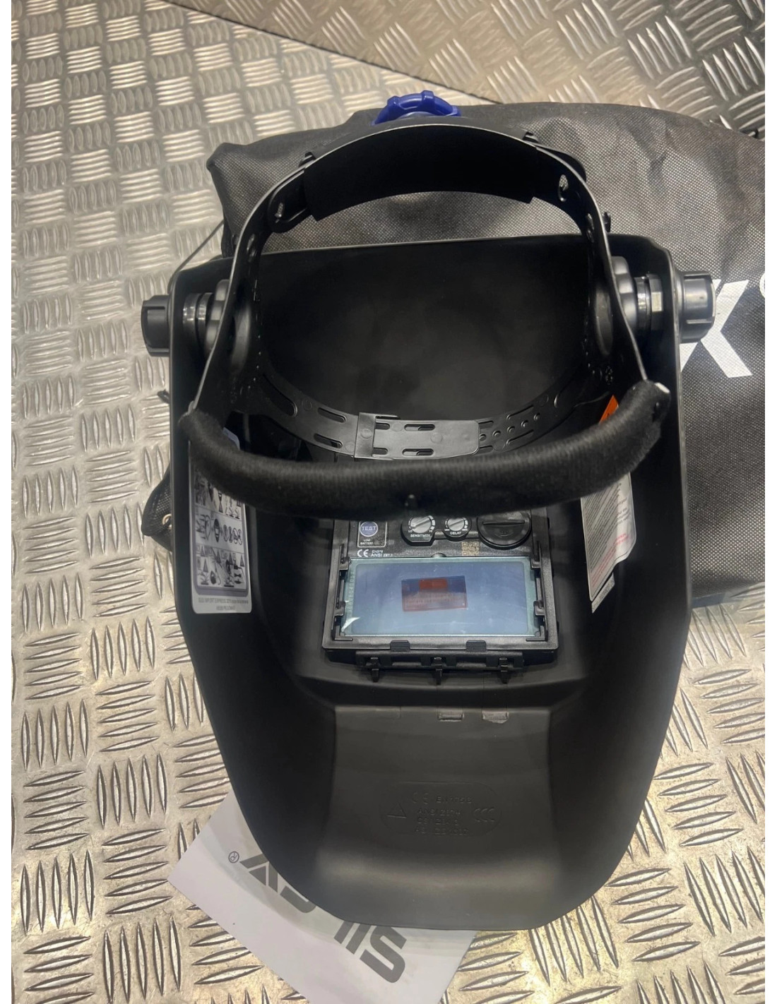 Masque de soudure professionnel auto assombrissant échelon 9/13 DIN CARACTÉRISTIQUES : Masque de soudure professionnelle qui peut être utilisé pour divers types de soudure (MIG, TIG, MMA...). La visière est auto obscurcissant. Elle passe de l'état clair (échelon DIN 4) à l'état foncé (échelon DIN 9-13). Le filtre protège efficacement l'utilisateur contre les rayons ultraviolets (UV) et infrarouges (IR), qui peuvent être nocifs pour les yeux et la peau. Le casque de soudure est durable et résistant aux dommages mécaniques, ce qui est important dans des conditions de travail difficiles. La visière est légère et bien équilibrée pour plus de confort pendant les longues périodes de soudure. La visière est alimentée par une batterie CR2032 et une batterie solaire qui se charge pendant le fonctionnement avec une cellule photovoltaïque. Le modèle "noir uni" possède un filtre "True Color" qui permet au soudeur de mieux appréhender son environnement. Ce filtre n'est pas disponible sur les autres modèles. Conforme aux normes DIN, EN379 1/2/1 et EN175. CARACTÉRISTIQUES TECHNIQUES : Alimentation : batterie solaire + batterie CR2032 ON/OFF : entièrement automatique, auto obscurcissant Réglage de la sensibilité : ajustement progressif Classe optique (modèle noir True Color) : 1/1/1/1 Classe optique (autres modèles) : 1/1/1/2 Degré de protection à l'état clair : 4 DIN Degré de protection à l'état sombre : 9-13 DIN Protection UV/IR : jusqu'à 16 DIN Température de fonctionnement : de 10 à 55 degrés Champ de vision : 9,2 x 4,2 cm Dimensions du filtre : 11 x 9 x 0,9 cm Temps de réponse (éclaircissement - assombrissement) : 5/30000 sec Temps de réponse (assombrissement - éclaircissement) : 0,1 - 0,8 s (réglable par bouton)