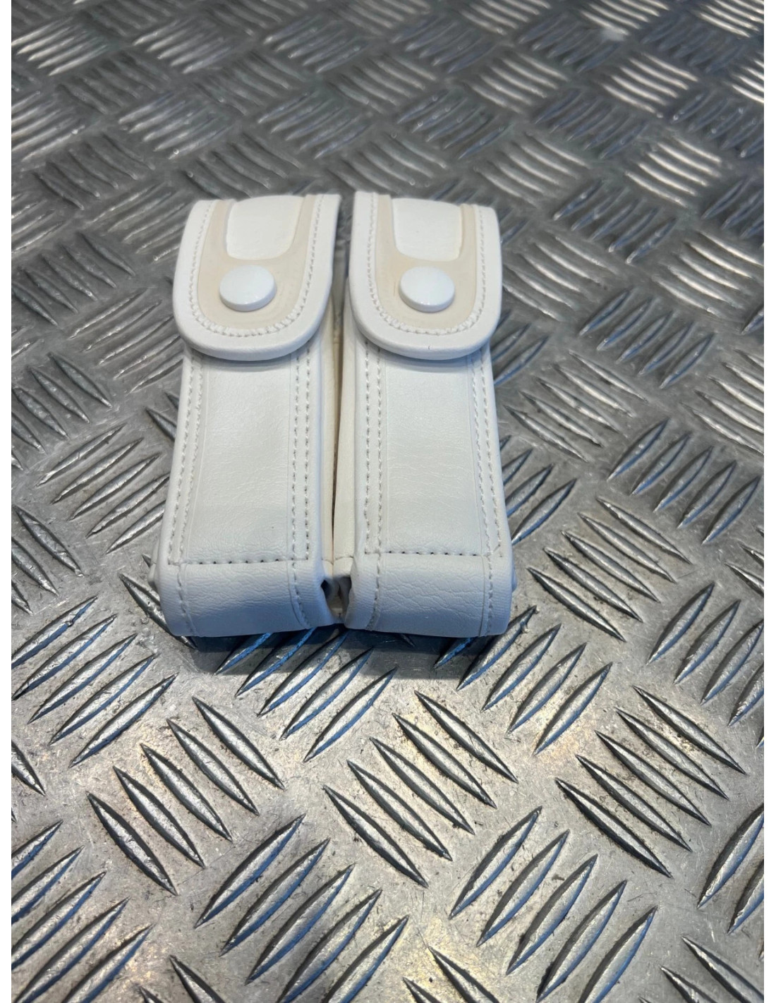 Porte-chargeurs de pistolet automatique en cuir blanc.
