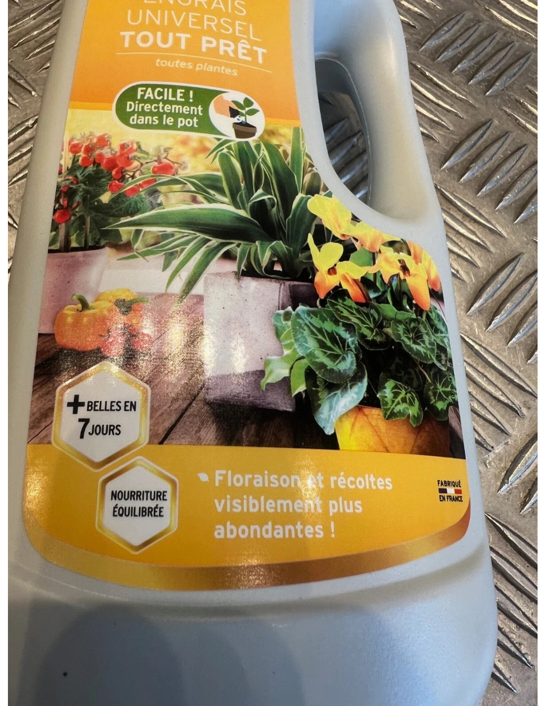 Il est adapté à tous types de fleurs, fruits et légumes et apporte une nourriture équilibrée pour une floraison et des récoltes visiblement plus abondantes ainsi que des plantes plus belles en 7 jours (comparé à une plante non nourrie).
