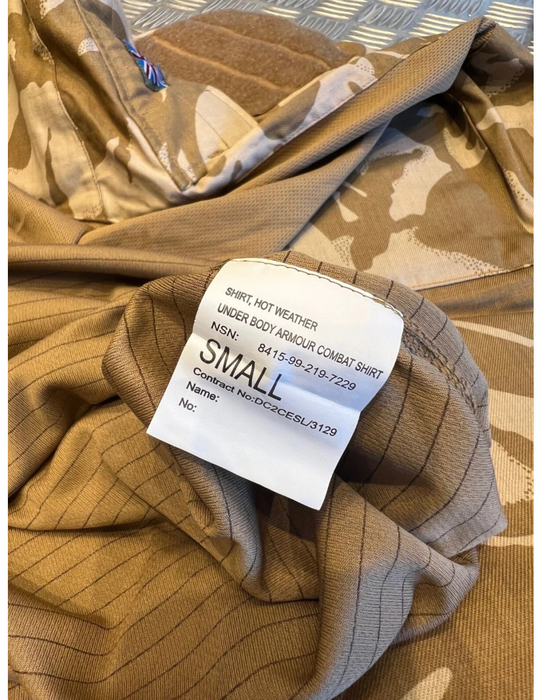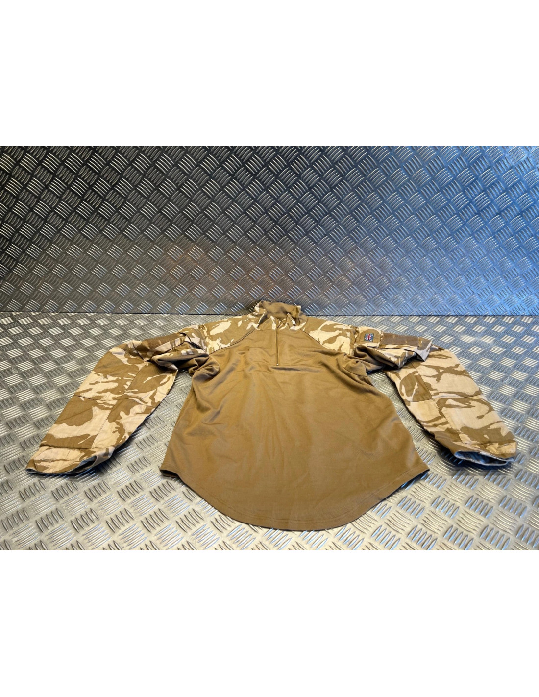 Chemise britannique tactique neuve sous gilet en camouflage désert DPM. Il s'agit d'une pièce d'équipement originale de l'armée britannique UBACS (Under Body Armour Combat Shirt). Le camouflage ressemble ou camouflage désert tchèque et cette chemise tactique est donc populaire auprès de nos soldats en mission à l'étranger.