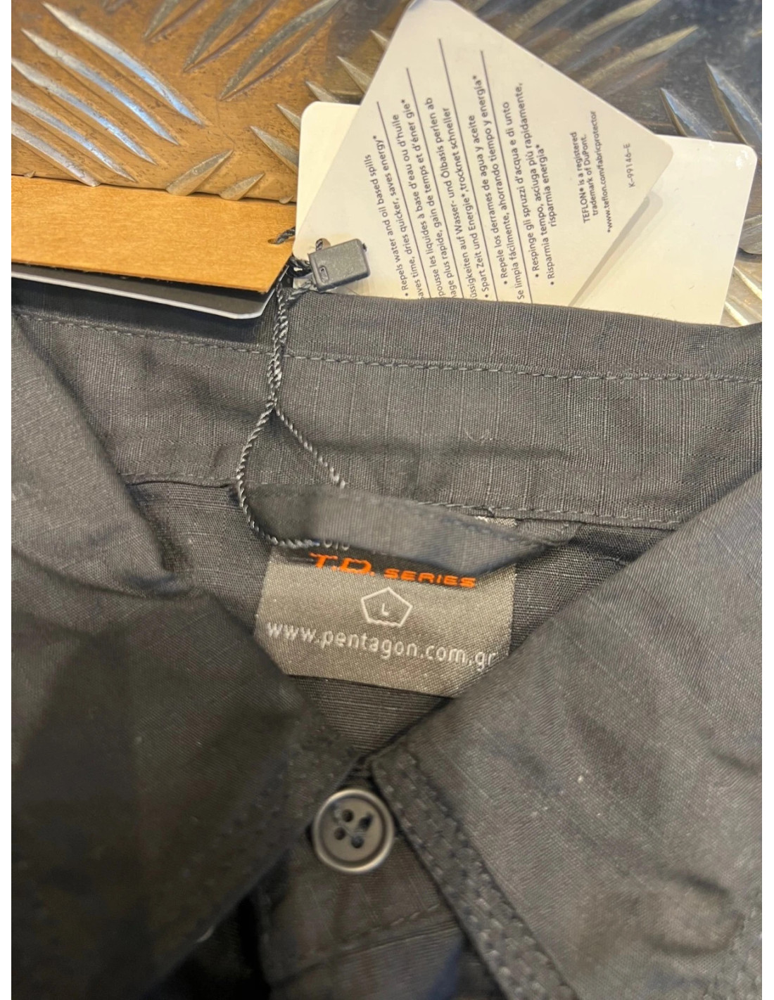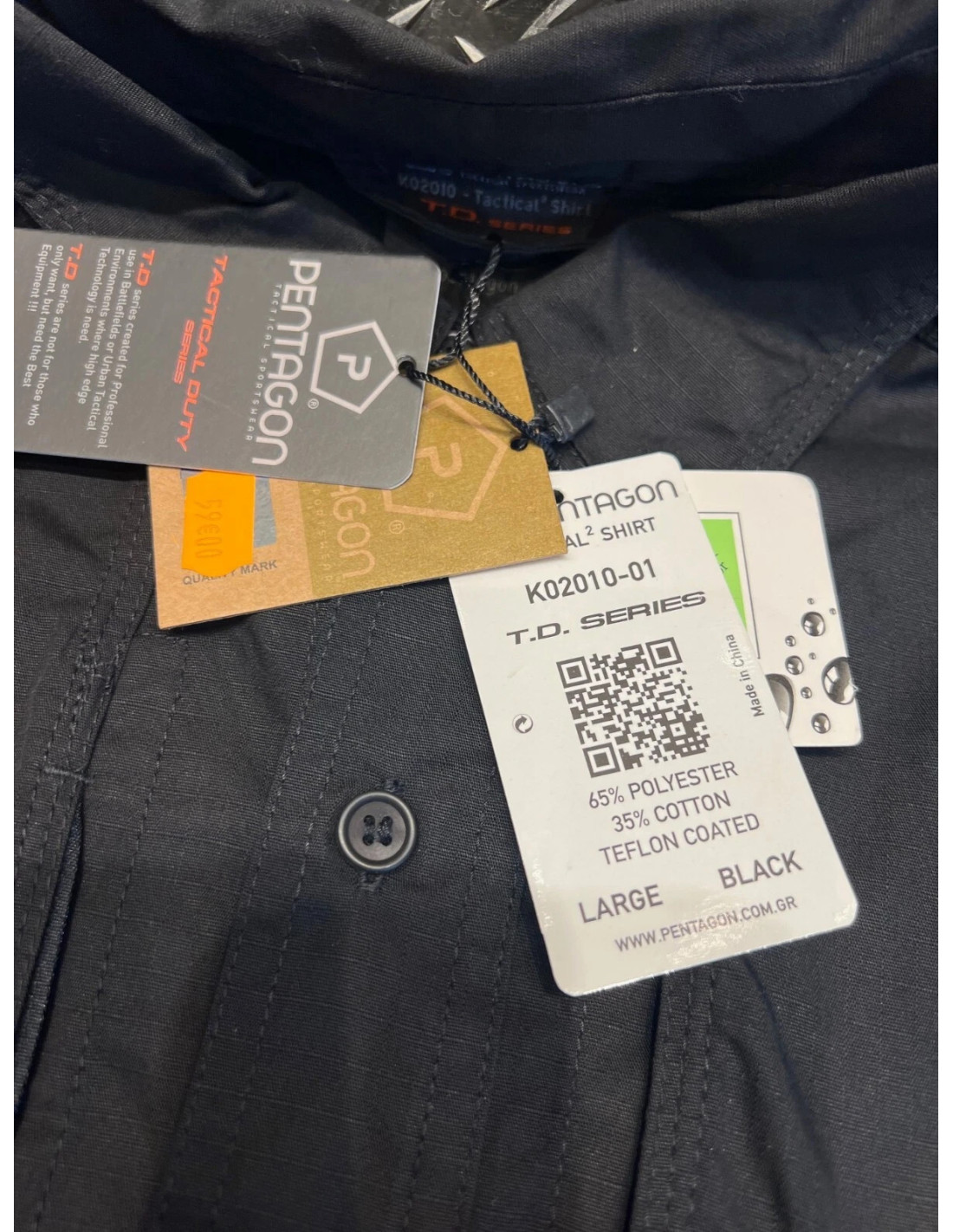 • Coutures triples pour une durabilité supplémentaire sur les points de tension, une sangle de bras à manches courtes et des boutons de maintien de la pointe du col. .