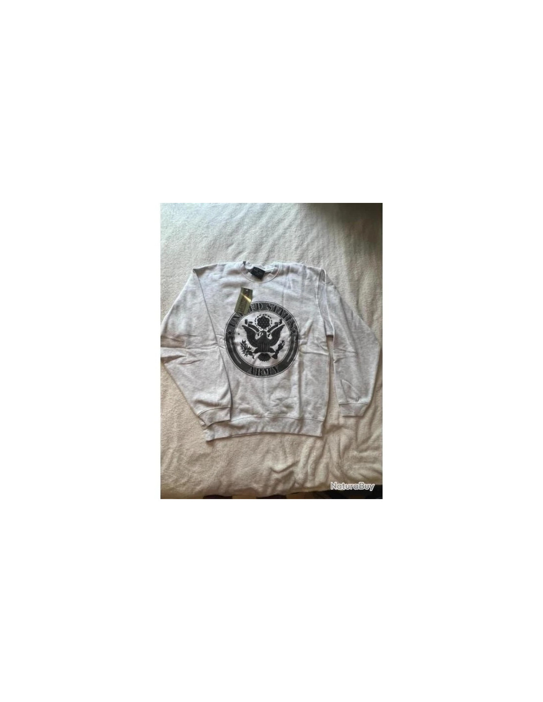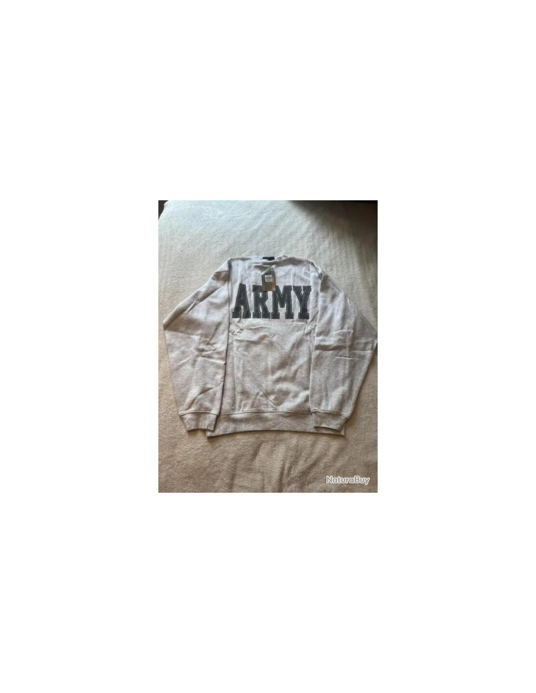 SWEAT SHIRT GRIS CHINE IMPRIME DU LOGO US ARMY DEVANT ET DU NOM DERRIERE TAILLE XL Fabricant : MILTEC Réf : 11473008-XL Matière : 50 % Coton, 50 % Polyester Couleur : Gris chiné Impression : Grise et Noire sur le torse ainsi que sur le dos Taille : au choix M, L, XL et XXL Particularités : - Sweat shirt à manches longues - Bas des manches et taille élastiqués pour un plus grand confort - Col rond ou ras du cou élastiqué pour un enfilage plus aisé - Sweat molletonné, de qualité supérieur pour plus de chaleur, de confort et de douceur au touché - Double surpiqûres pour plus de solidité - Imprimé du logo de l'US ARMY (aigle derrière un écusson américain tenant dans ses pattes, d'un coté des flèches et de l'autre un rameau d'olivier, le tout cerclé du nom UNITED STATES NAVY surmontée de la bannière "E Pluribus Unum" signifiant "De plusieurs, un" puis un blason comportant 13 étoiles) en gris et noir sur le torse - Imprimé également du mot ARMY gris entouré de blanc puis de noir, en gros dans le dos.