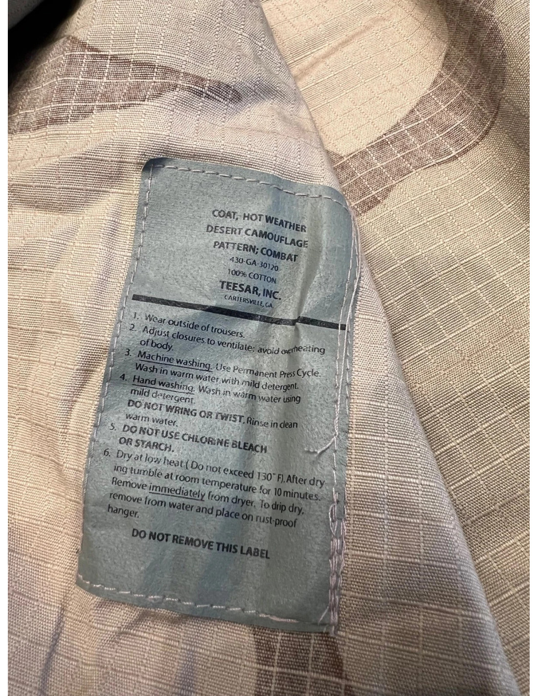 - Composition : 100% Coton ; - Tissu RipStop ; - 4 Poches appliquées avec patte et fermeture par boutons ; - bord de manche réglable par boutons ; - Renforcement des coudes ; - Tailles : l ou xl - Coloris : camo desert