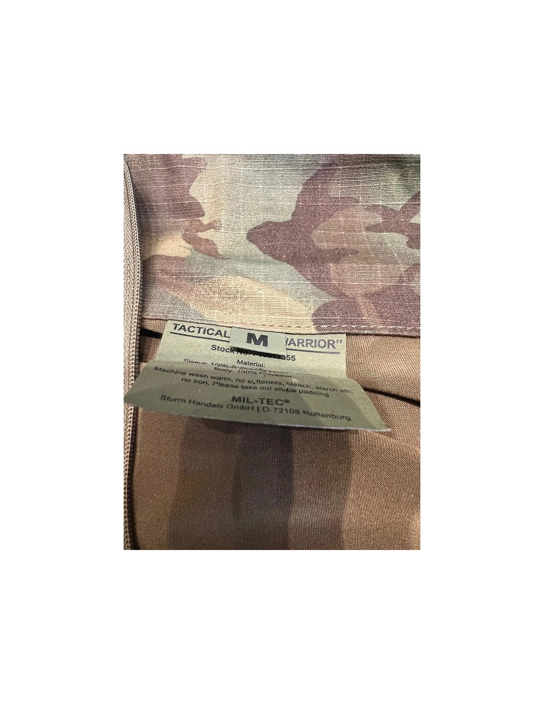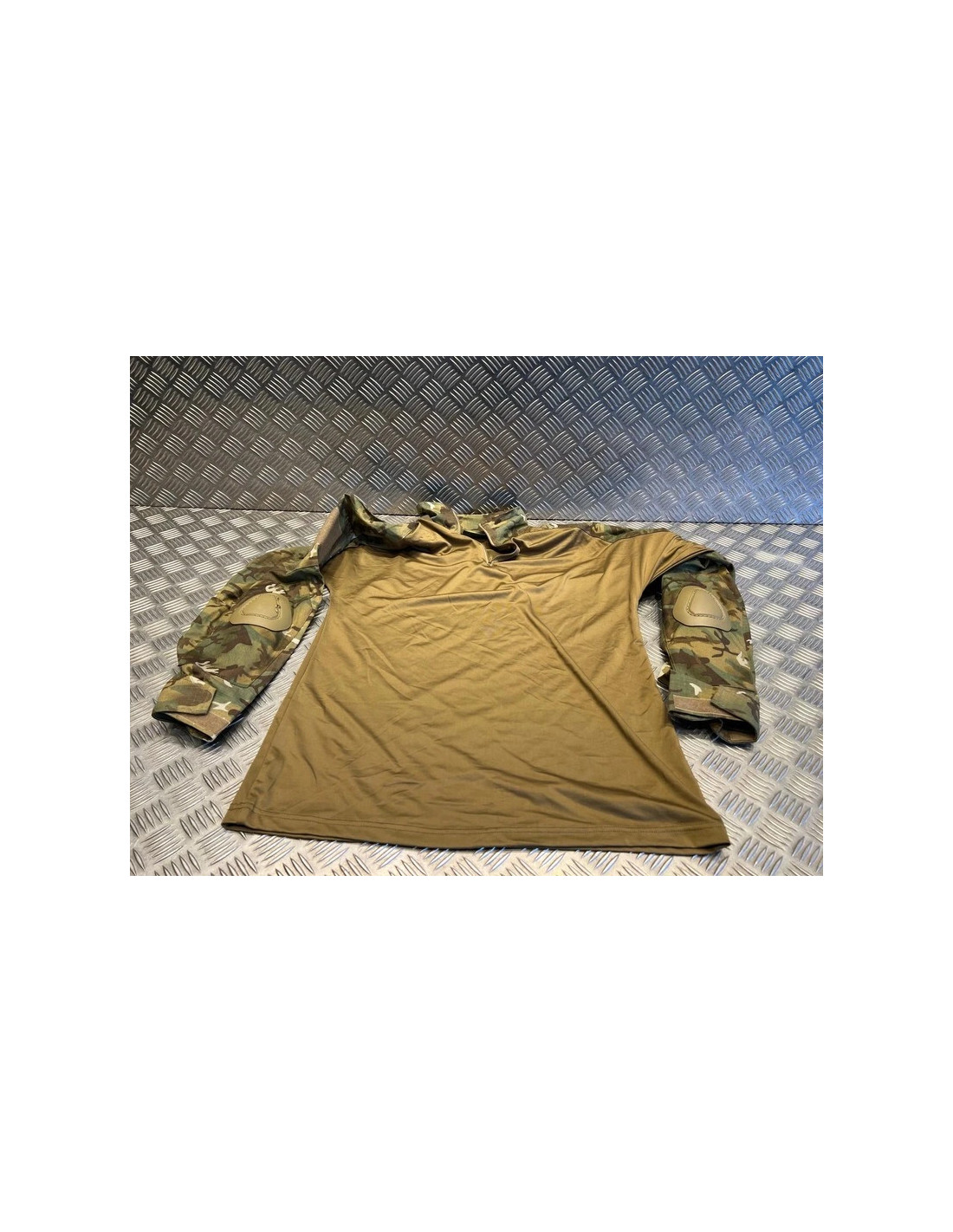 Torse : 92 % polyester, 8 % élasthanne Manches et col : 65 % polyester, 35 % coton (Ripstop) Bordure : 100 % polyester (Oxford), revêtement en polyuréthane Rembourrage : mousse EVA Protections : 100 % polychlorure de vinyle - chemise de combat avec protections des coudes - col à fermeture haute avec fermeture éclair - poches sur les manches avec patch - manche réglable avec fermeture auto-agrippante - rembourrage amovible au niveau des coudes