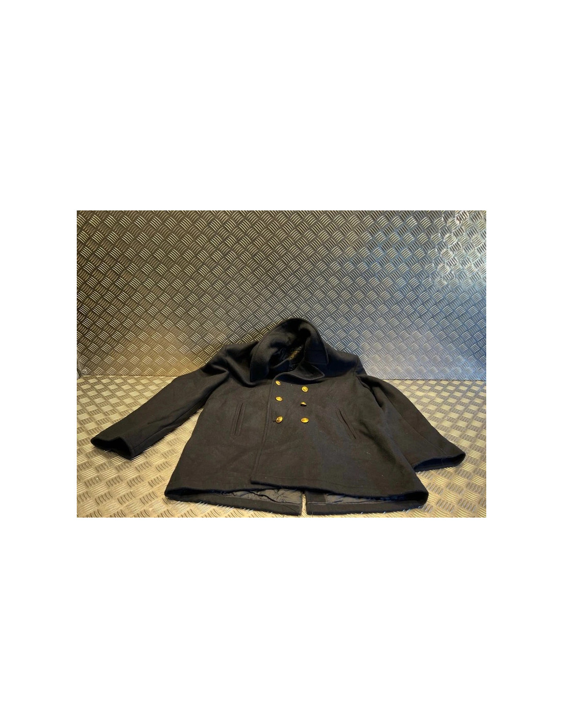neuf mais prévoir une machine a laver car de la poussière dessus du au stockage.Veste entièrement doublée d'une doublure matelasséeDouble boutonnageGrands boutons dorés avec motif d'ancre2 poches latérales fenduesPoche intérieureFente au dos